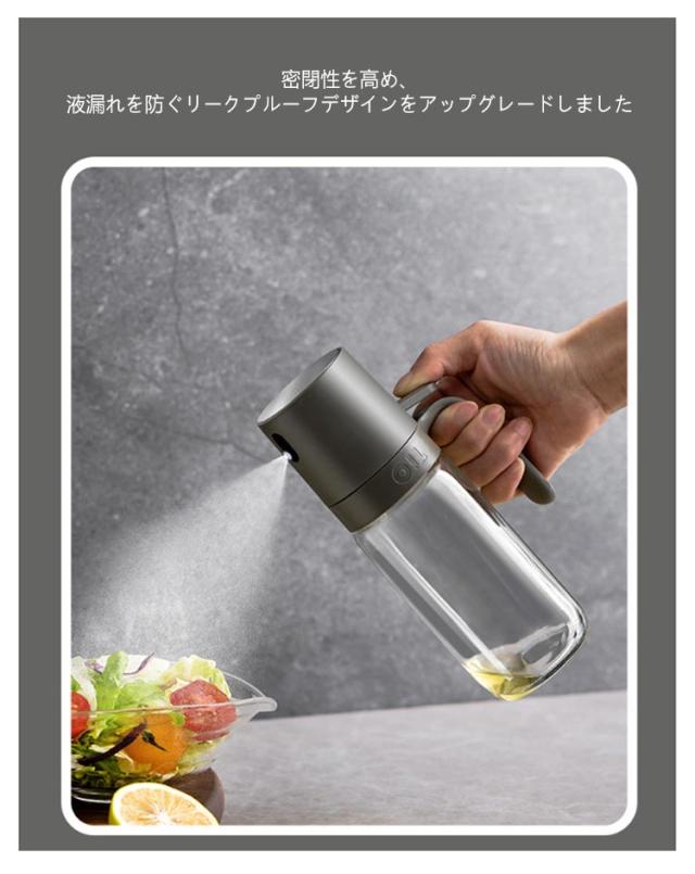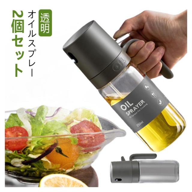| 2個セット オイルスプレー 霧化スプレーは油の量を正確にコントロールすることができ、油の量をコントロールするあらゆるレシピに適しています 透明なガラス製なので、油の残量を簡単に確認することができます 密閉性を高め、液漏れを防ぐリークプルーフデザインをアップグレードしました | |