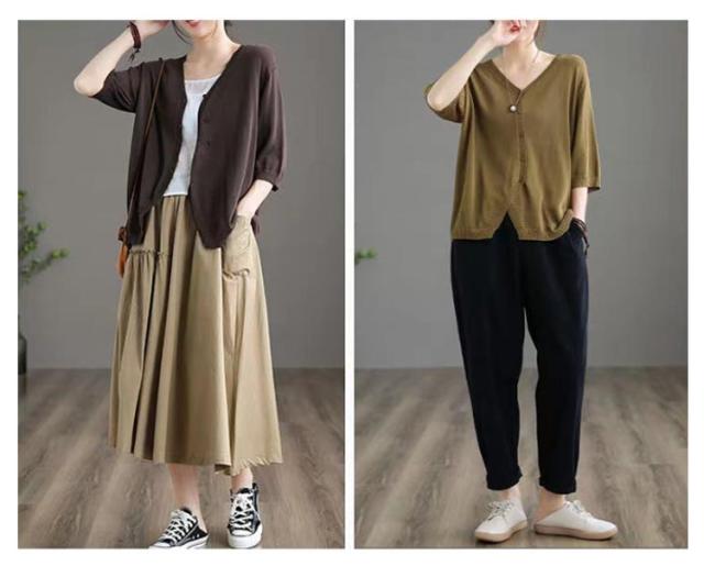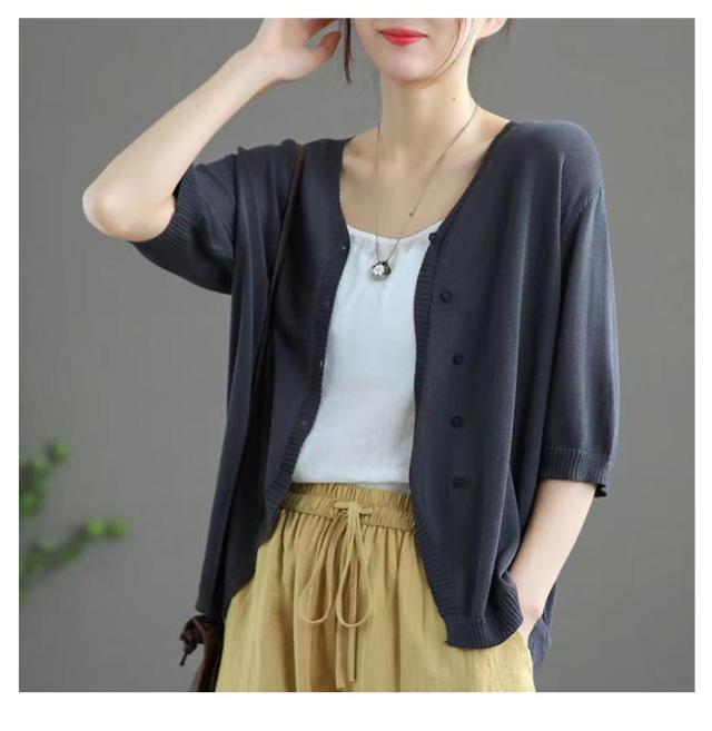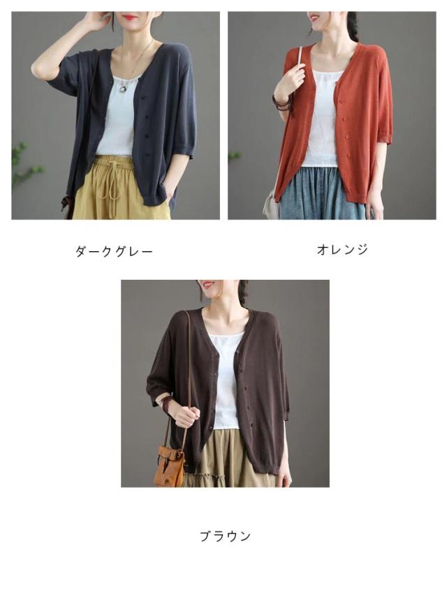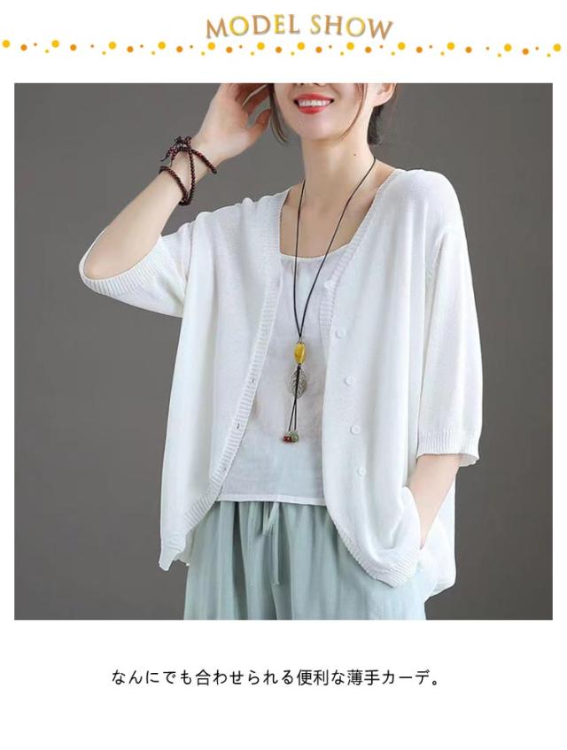 アウター サマーカーディガン 半袖 Vネック 着回し カーディガン トレンチコート ベージュ トップス ゆったり おしゃれ 体型カバー ナチュラル レイヤード 重ね着 ニットカーディガン シンプル 40代 20代 30代 カーディガン 50代 冷房対策 ゆったり 軽い