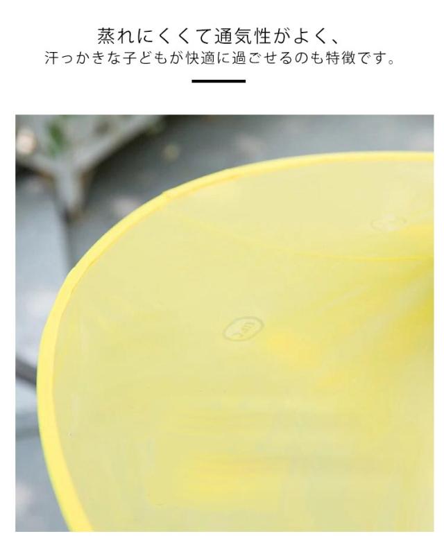 | 雨の日の保育園や幼稚園、小学校への通学にぴったり! より広い視界を確保する透明フードとなっていますので視界を妨げません。その上透明バイザー付なので雨水が顔に当たるのを少なくし、視認性もアップ。 アニメアヒルやUFO形のデザイン、リュックやランドセル背負ったままでも使用可能! 蒸れにくくて通気性がよく、汗っかきな子どもが快適に過ごせるのも特徴です。 両手を自由に使える!傘をさす手間なしで自由に動き回れます。 使用しない場合は、帽子を畳んでサイズを簡単に小さく厚さはわずか1-2センチとなります。お気軽持ち運べます。 気軽に携帯でき、お気に入りのレインウェアで、雨の日のお出掛けが一段と楽しくなります!突然の雨にも安心! | |