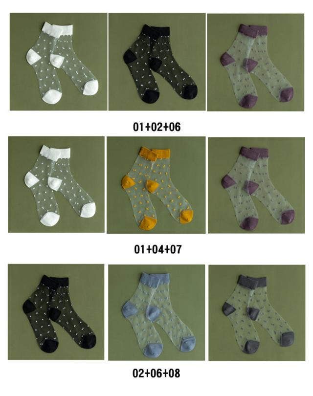 | 【シースルーソックス】【3足組】【全8色】 透け感がおしゃれなシースルーソックス。 春〜秋のデイリーユースに! シンプルのデザインで年齢別問わず履けます♪ 薄くて履き心地抜群! | |