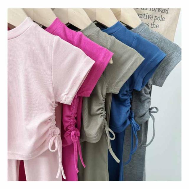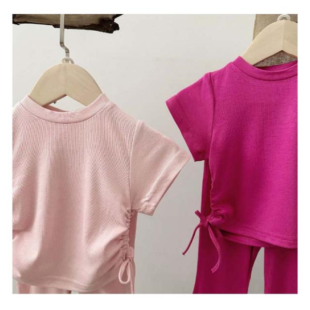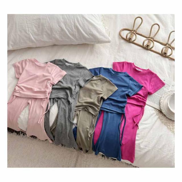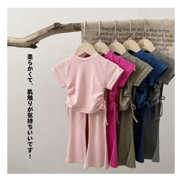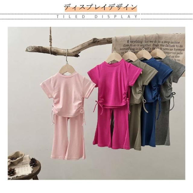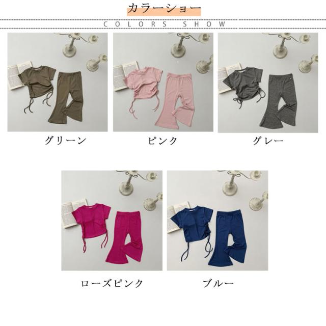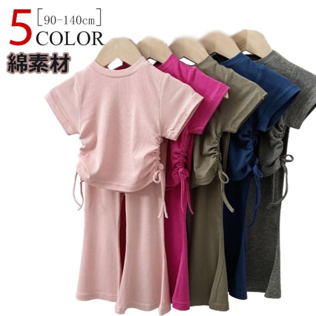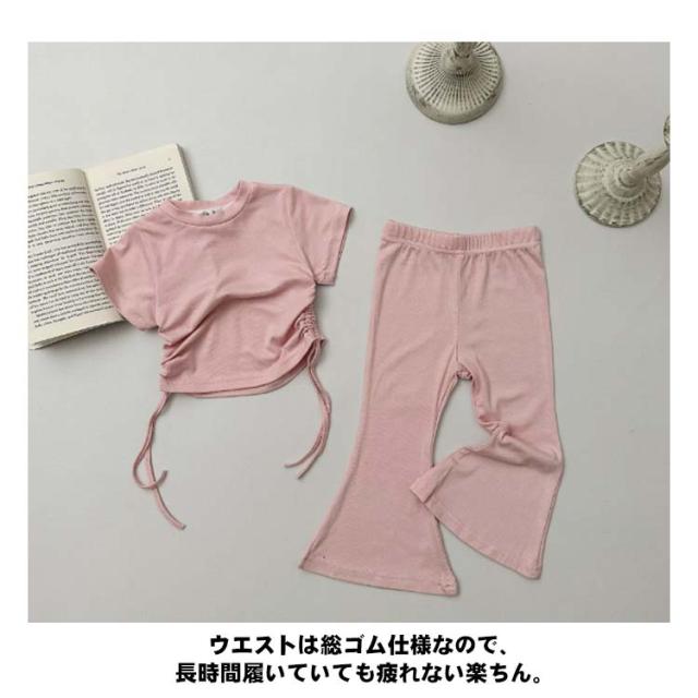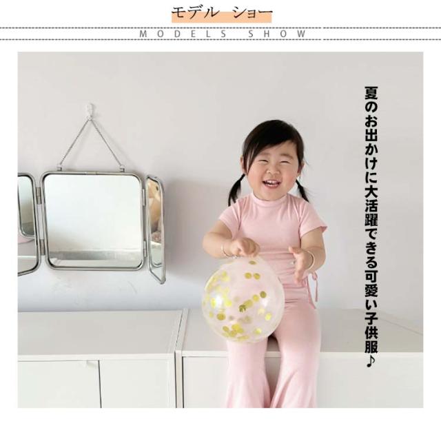 ジュニア ガールズ 半袖tシャツ 110 フレアパンツ 夏 女の子 綿 韓国子供服 ロングパンツ 夏服 上下セット キッズ おしゃれ カジュアル かわいい コットン 韓国子供服 カットソー 90 女児 100 120 130 140cm お出かけ ガーリー 通園
