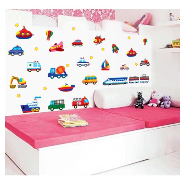 カー 自動車 50*70cm かわいいのりもの トラック 消防車 トレイン ヨット 列車 車 ロケット 飛行機 ヘリコプター ウォールステッカー 電車 パトカー ウォールステッカー 新幹線 オートバイ バイク 自転車 船 気球