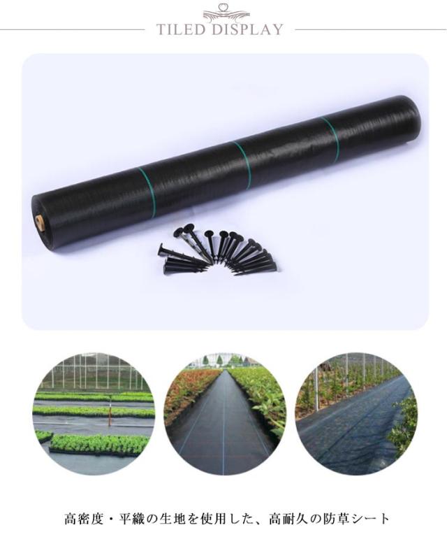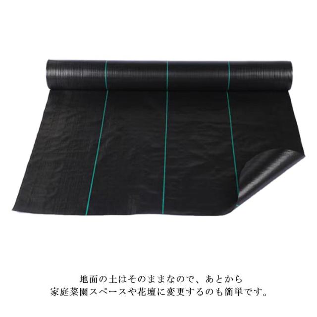 | 0.6m×200m 防草効果抜群 雑草が生えない 雑草防止シート 高密度・平織の生地を使用した、高耐久の防草シート 日光を遮断し雑草の光合成を抑える事で、 何度抜いても生えてくる雑草を枯れさせて再発生を防ぎます。 地面を雑草が生えにくいコンクリートで固めるのには、 かなりの費用がかかりますが防草シートならとっても経済的で手軽。 地面の土はそのままなので、あとから家庭菜園スペースや花壇に変更するのも簡単です。 除草剤や草刈り機より手軽でお子様やペットをがいる家庭でも◎ 数年間敷きっぱなしにできるのも魅力! | |