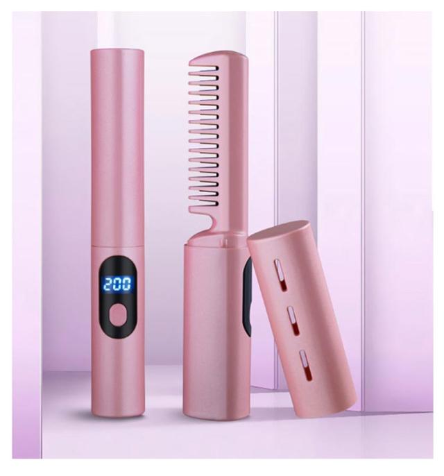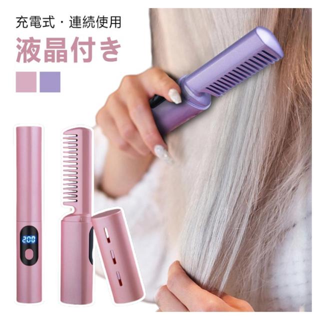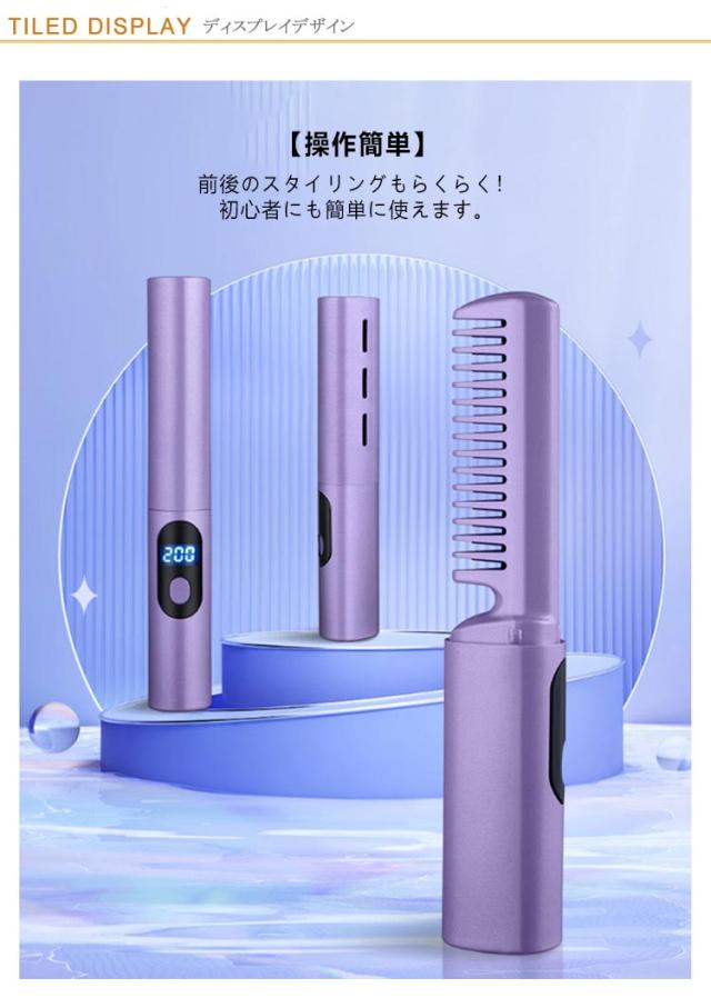ヘアアイロン アイロンブラシ コードレス ブラシヘアアイロン ヒートブラシ ヒートブラシ ストレートブラシ 両用可能 温度3段階調節 USB充電式 ヘアアイロンブラシ 静電気防止 火傷防止 MAX200℃ コードレス カール 海外対応 旅行 ミニ型 大容量