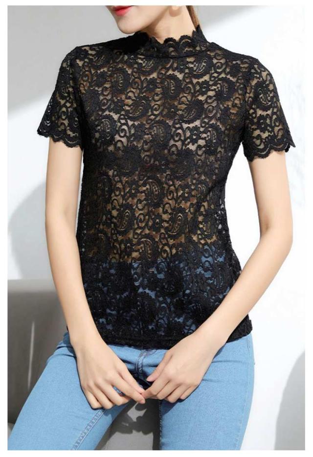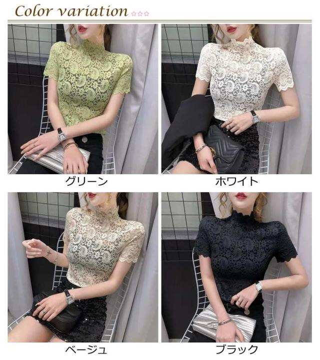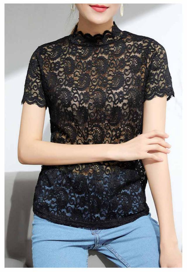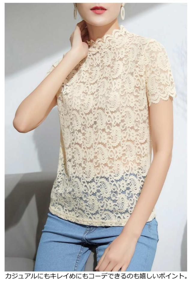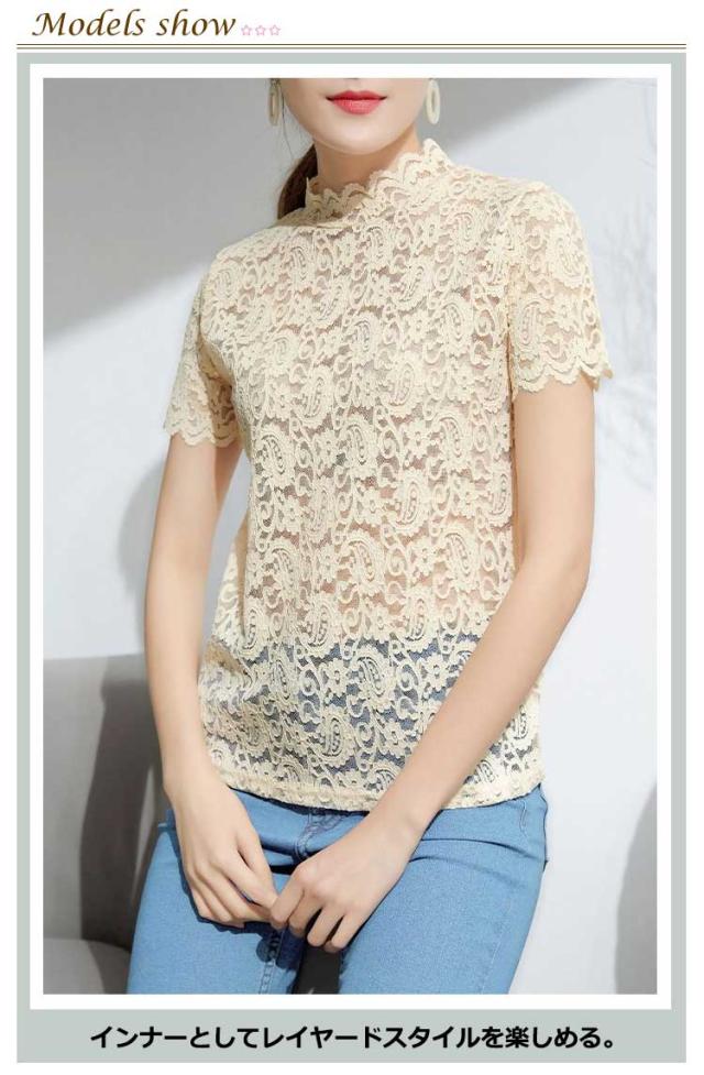 薄手 シアートップス シースルートップス レース インナー レーストップス 半袖 透け感 送料無料 送料無料 レディース ハイネック カットソー 花柄 tシャツ レース レイヤード 重ね着 カジュアル きれいめ おしゃれ かわいい 春夏