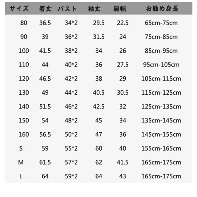 | サイズ | 90cm 100cm 110cm 120cm 130cm 140cm 150cm 160cm S(大人) M(大人) L(大人) |