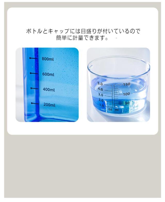 | 残量が一目瞭然クリアデザイン! 市販の詰め替え用液体&粉洗剤を入れられる、洗濯用の詰め替えボトル。 ボトルとキャップには目盛りが付いているので簡単に計量できます。 詰め替え時に便利な大口デザインなのもポイント。 | |