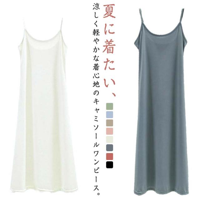 レディース ロング丈 シンプル 選べる着丈 キャミソール ワンピース ノースリーブ インナーワンピース シンプル ショートワンピース キャミソールワンピース 夏 ワンピース 無地 カジュアル ルームウェア