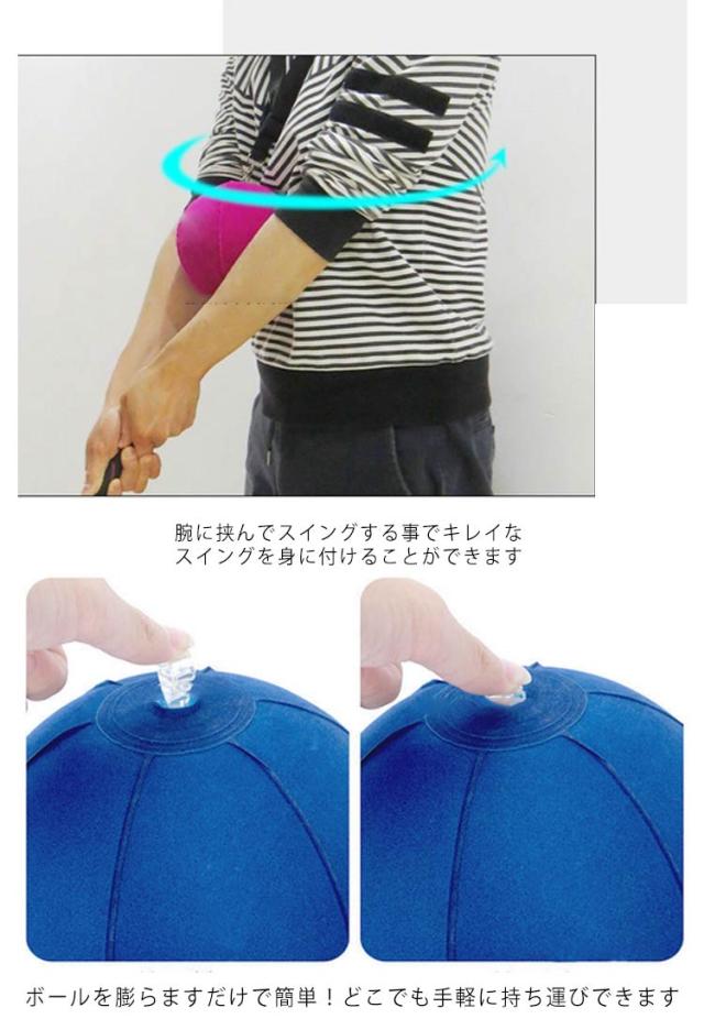 | エアポンプ付き、スイング練習に最適なゴルフスイング用トレーニングボール。 柔軟性の優れた素材で設計しておりますので、長くご使用いただいても痛くないです。 腕に挟んでスイングする事でキレイなスイングを身に付けることができます。 正しいリリースポイントを体得し、さらなる飛距離アップへ導きます。 ボールを膨らますだけで簡単!どこでも手軽に持ち運びできます。 場所も取らず自宅でのトレーニングにも最適です。 | |