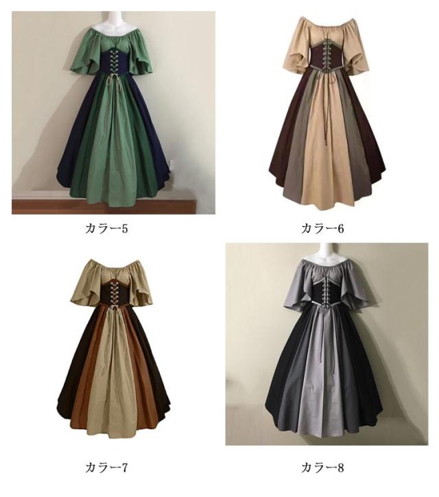ハロウィン ワンピース コスプレ 中世ヨーロッパ 服装 半袖 王族服 庶民 衣装 ベルスリーブ 発表会 豪華 ワンピース ヨーロッパ風 コスチューム スチューム衣装 仮装 演奏会 ドレス 舞台服 コスプレ 宮廷 演劇 ハロウィン 学園祭 文化祭 レトロドレス 撮影