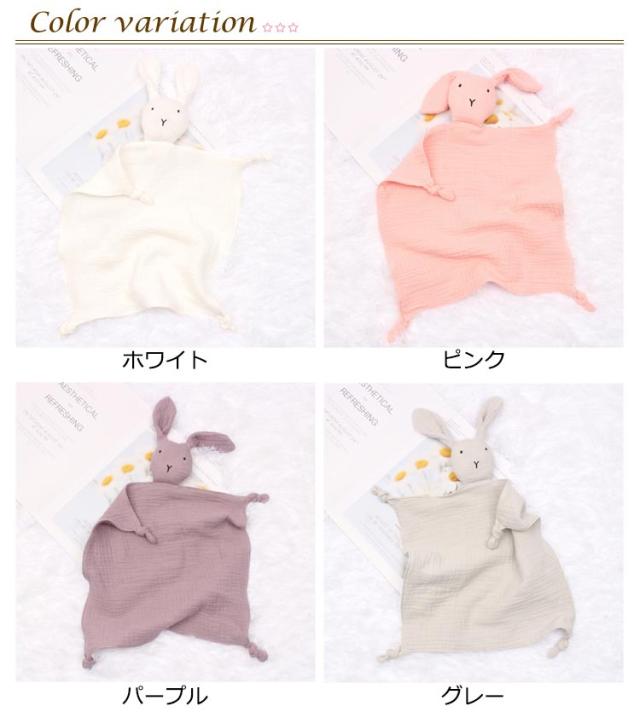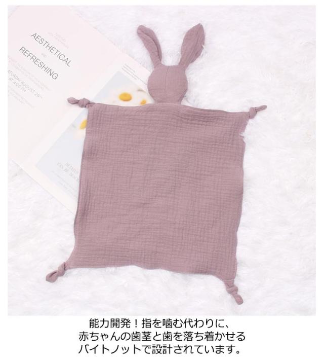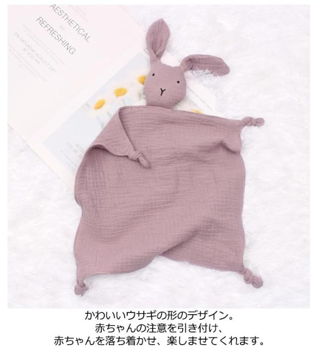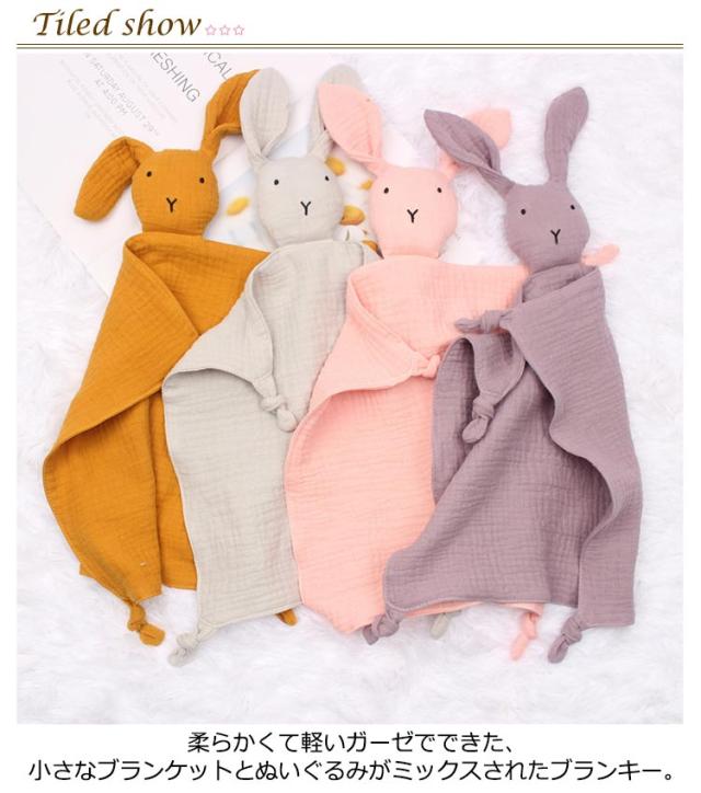 | 可愛いおしゃれなベビーぬいぐるみ付き ミニブランケット。 柔らかい素材。ベビーコンフォートブランケットは、非常に柔らかく、肌にやさしく、快適で通気性のあるダブルコットンガーゼ生地で作られています。 柔らかくて軽いガーゼでできた、小さなブランケットとぬいぐるみがミックスされたブランキー。 天然コットンなので赤ちゃんが噛んだり舐めたりしても安心。 かわいいウサギの形のデザイン。赤ちゃんの注意を引き付け、赤ちゃんを落ち着かせ、楽しませてくれます。 能力開発!指を噛む代わりに、赤ちゃんの歯茎と歯を落ち着かせるバイトノットで設計されています。 | |