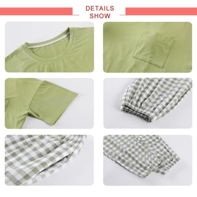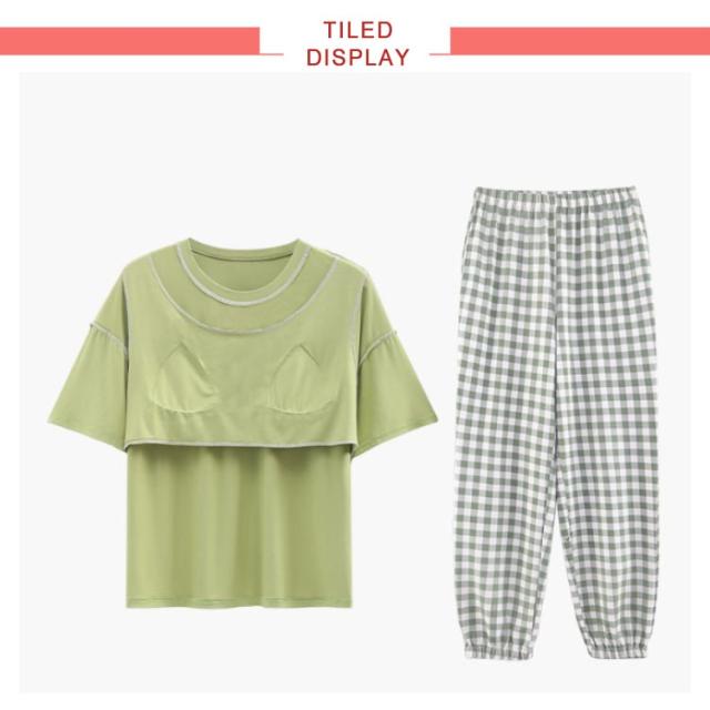 | 柔らかく涼しいモダール生地、通気性抜群です。 年齢を問い合わず使いやすいです。 胸カップ付きルームウェアセットアップ服。 さらにリラックスできますので、特に夏はおすすめです。 | |
