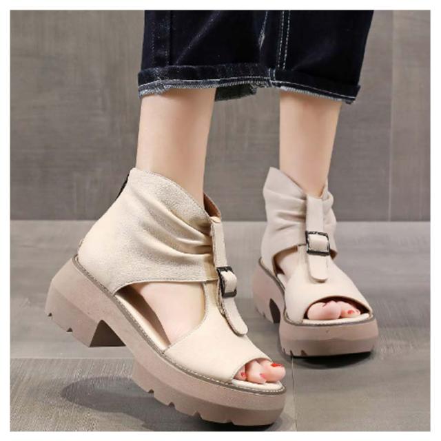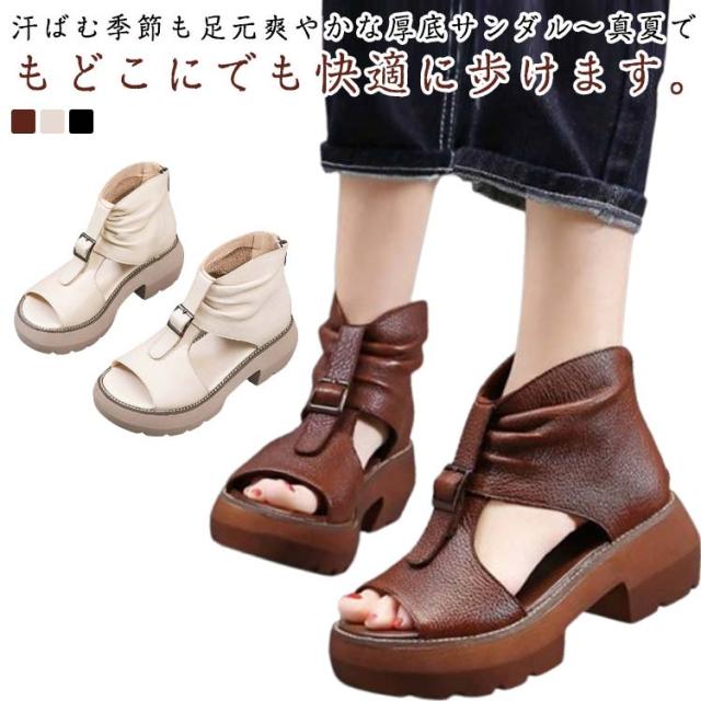| 汗ばむ季節も足元爽やかな厚底サンダル〜真夏でもどこにでも快適に歩けます。 シンプルだけどオシャレに決まる定番のブーツです。美脚効果でも抜群で、お出掛けが楽しくなっています。 ワンピースにもデニムにも!どんなお洋服ともスタイリングしやすい! カジュアルにもきれいめにも合わせられます◎ 靴底には滑りにくく、履きやすい素材を使用しているので、安心して履くことができます。 | |