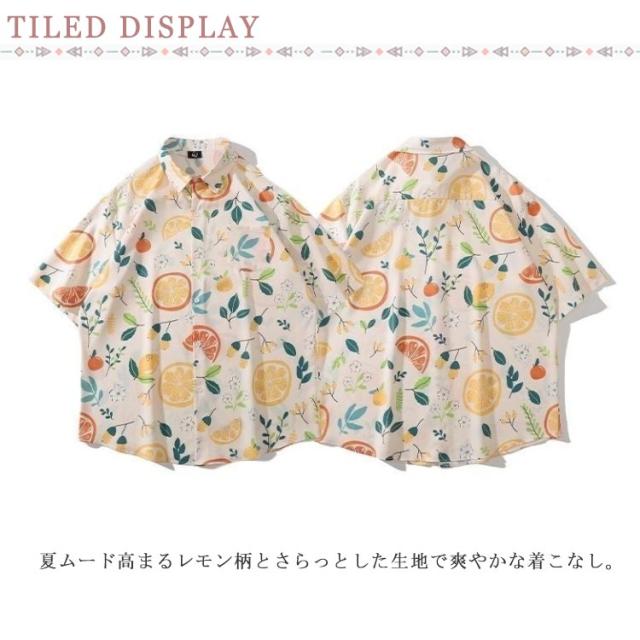 夏服 メンズ 柄シャツ 送料無料 カップル 羽織り レモン柄 レディース 春夏 柄シャツ フルーツ柄 果物 総柄シャツ シャツ アロハシャツ 可愛い アロハ シャツ ブラウス トップス カジュアルシャツ 大きいサイズ