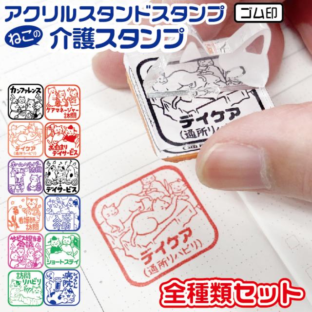 介護スタンプ アクリルスタンド 全種類セット スタンプ ゴム印 ねこ日和 アクスタ スタンプ カレンダー スケジュールスタンプ 介護用品 介護士 ケアマネージャー 介護 猫日和 はんこ 印鑑 キャラクター ねこ グッズ 文房具 判子 イラスト メッセージスタンプ すたんぷ