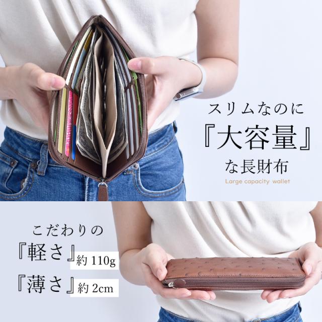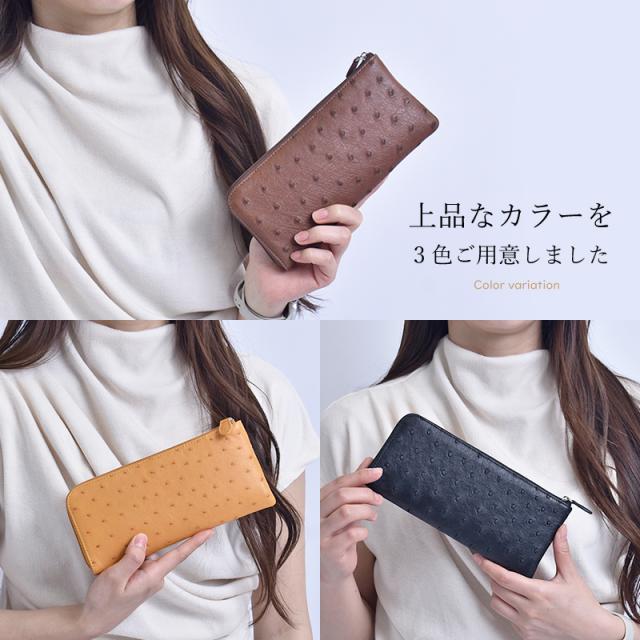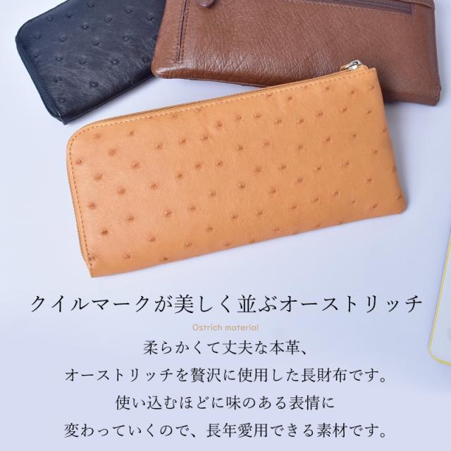 アウトレット オーストリッチ 長財布 レディース L字ファスナー 本革 ハーフポイント 薄型 スリム 軽い 多収納 ブラック ブラウン キャメル 訳あり L字財布 レザー 大容量 駝鳥 開運 一粒万倍日 大人 おしゃれ 軽量 財布 薄い 男性 女性 人気 ギフト 送料無料