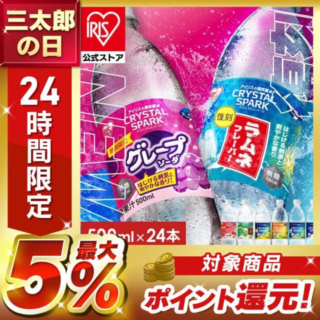 炭酸水 500ml 24本 強炭酸水 アイリスオーヤマ クリスタルスパーク 炭酸 ラムネ グレープソーダ アセロラ クリームソーダ レモン シャインマスカット ゆず とちおとめ フレーバー プレーン 無糖 天然水 ペットボトル アイリスフーズ 炭酸飲料