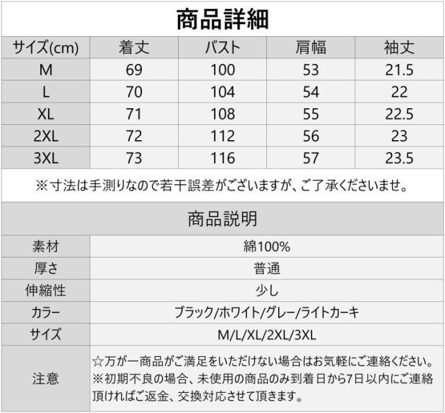 ▼サイズ:M/L/XL/2XL/3XL(単位:CM)