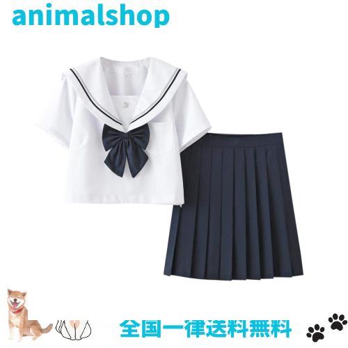 Aculldo セーラー服 半袖 長袖 女子制服 学生服 女子高校生 高校生 学生 制服 コスチューム 3点セット JK制服 二本 白い 可愛い コスプレ