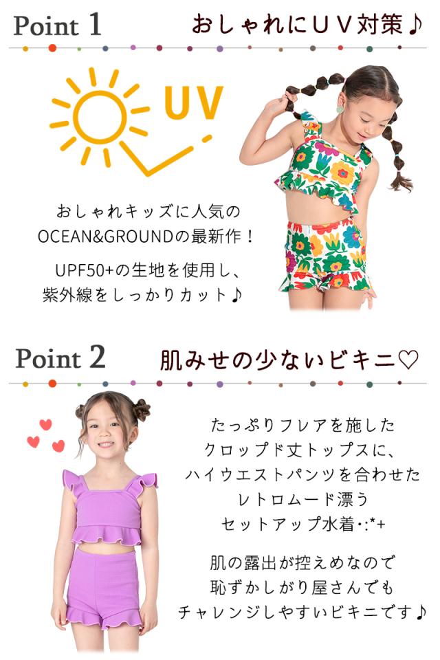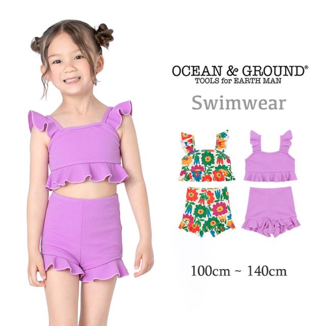 オーシャンアンドグラウンド キッズ 水着 女の子 ビキニ セパレート 上下セット ハイウエスト 100 110 《レビュー記入でメール便無料》 120 130 140 子ども 幼稚園 保育園 子供水着 キッズ水着 女の子水着 フリル 花柄 かわいい お洒落 : Ocean & ground 4412808