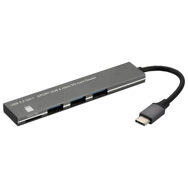USBハブ 3ポート microSDカードリーダー付き USBType-Cコネクタ [品番]01-3976 PC-SH3PC08-H [[パソコン・スマホ関連:USBメモリ・ハブ] オーム電機]