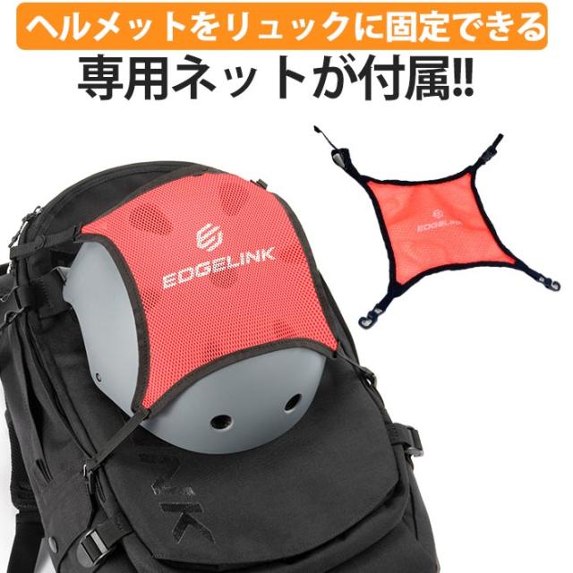 ヘルメットをリュックに固定できる専用ネットが付属。機能的な仕様とストリートに溶け込むカジュアルデザインが魅力!学校生活や部活、旅行にスポーツシーンとあらゆるシーンで活躍。