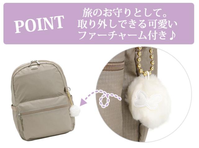 旅のお守りとして可愛いホワイトのチャーム付きなのも女性心をくすぐります。