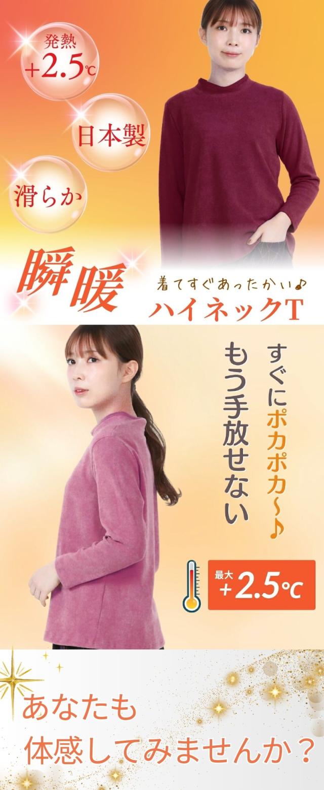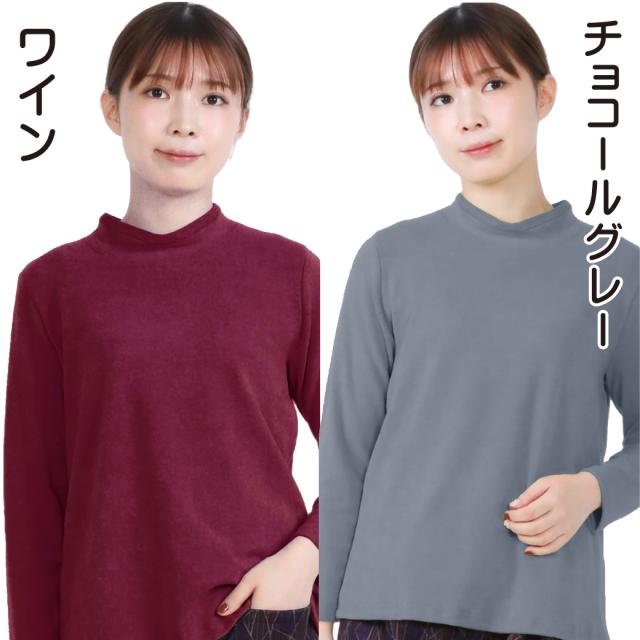 シニアファッション 80代 70代 ハイネック レディース トップス 長袖 カッソー 高齢者 介護 柔らか シンプル 無地 発熱 保温 暖かい 瞬暖 日本製 敬老の日