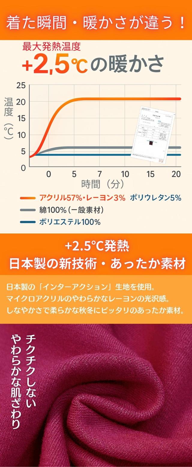 手を通した瞬間からあたたかい 肉厚でシンプル 何にでも合う 着回しが効く 天使の肌ざわり もちもちヒート ふんわりマシュマロ 発熱素材 瞬暖!カットソー シニアファッション 暖かい