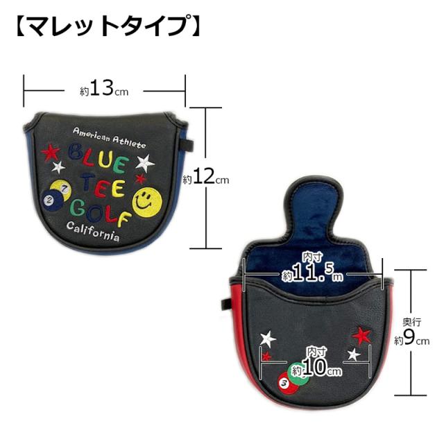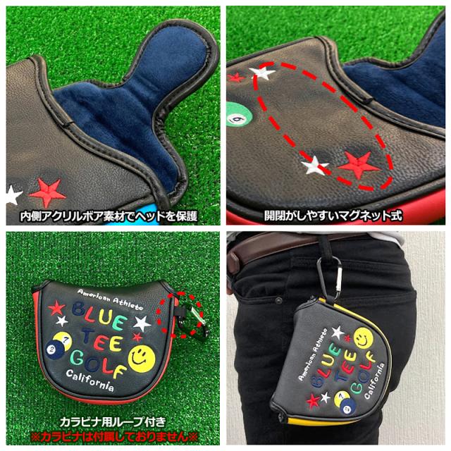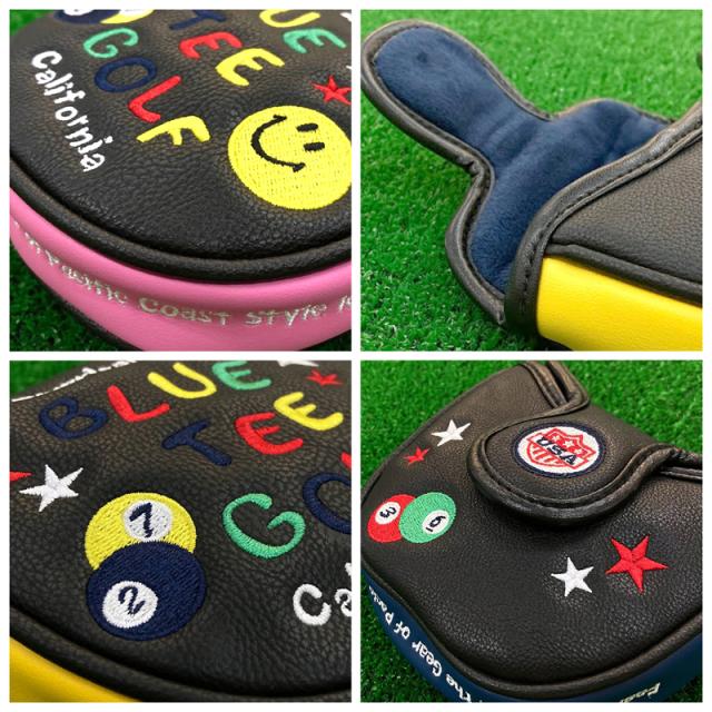 ブルーティーゴルフ パターカバー マレット型 スマイル&ピンボール ブラック BTG-PC002 【メール便発送】【新品】Blue Tee Golf California PC-002 PC002 マレットタイプ ヘッドカバー パター用