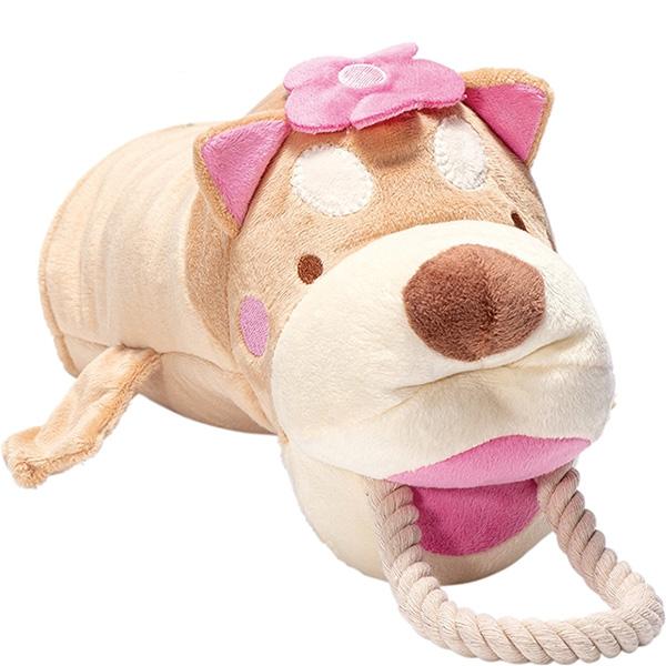 ・口元にはわんちゃんが大好きなコットンロープがついているので、ひっぱりっこ遊びもできます。