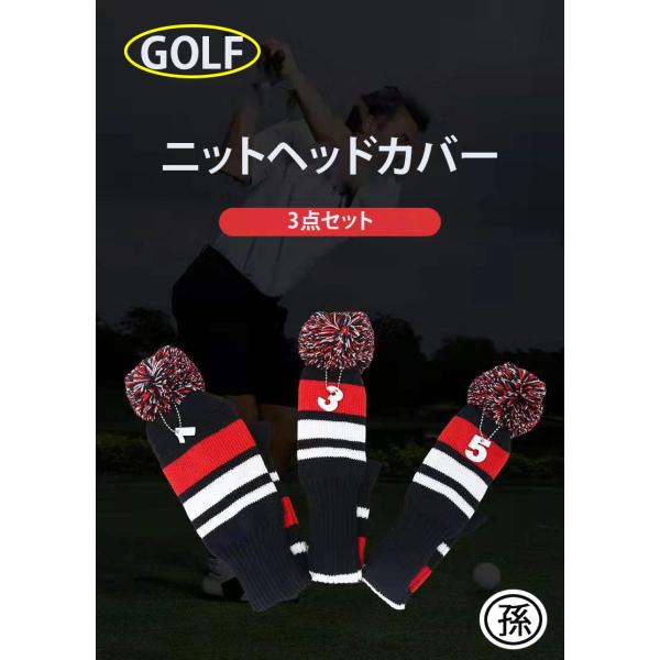ゴルフドライバーカバー ニットヘッドカバー ヘッドカバー ゴルフ用品 ゴルフクラブ クラブカバー ニット製 3点セット 数字ペンダント付け 可愛い