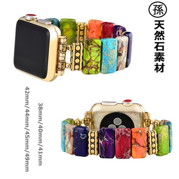 Apple watchバンド アップルウォッチバンド 腕時計ベルト 天然石素材 オシャレ交換ベルトSeries10 38 40 41 42 44 45 46 49mmアップルウォッチアクセサリー レゲエファッション おしゃれ