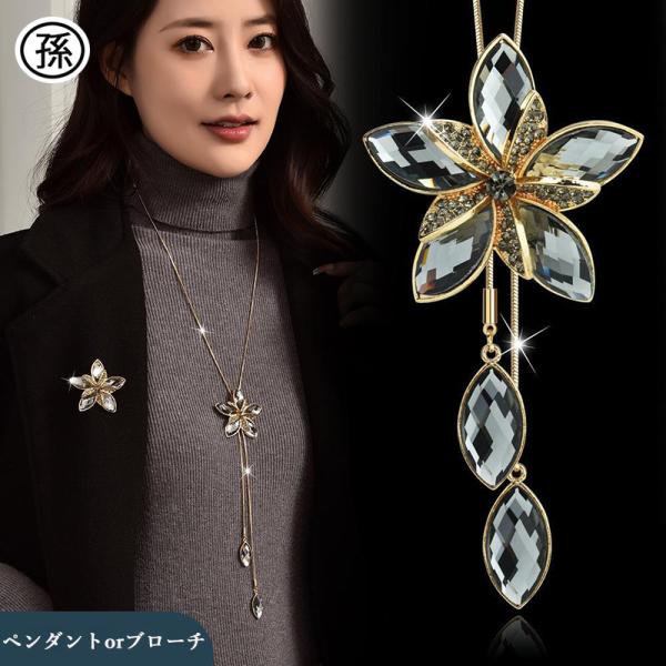 レディース ロングネックレス ブローチ ペンダント アクセサリー 水晶 オシャレ シンプル プレゼント 上品 かわいい ファッション 結婚式 上品 誕生日 母の日