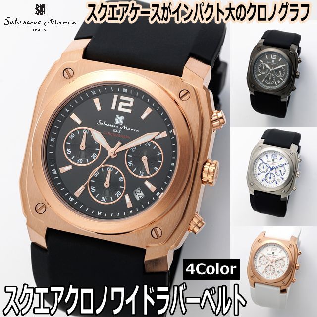 メンズ 腕時計 クロノグラフ ウォッチ(Salavatore Marra サルバトーレマーラ スクエアケース ワイドラバーベルト ゥロノ SM24109)