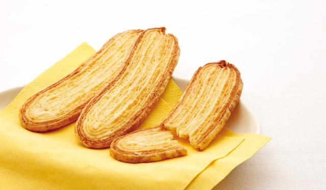 本物のバナナにしかないおいしさと香りをしっかり練り込んだビスケット生地を、 何層にも折り重ねてさっくりと焼き上げました。