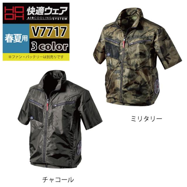 ファン付きウェア (服のみ) 村上被服 HOOH 鳳凰 作業服 V7717 サイドファン半袖ジャケット 4L
