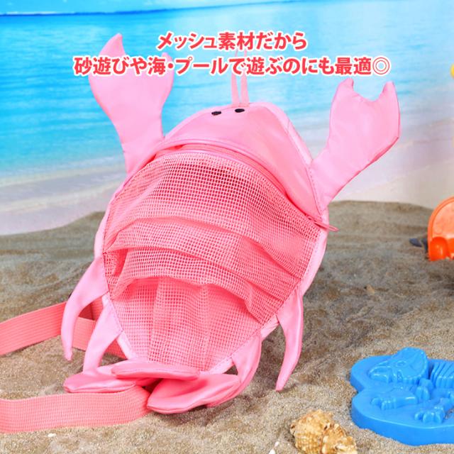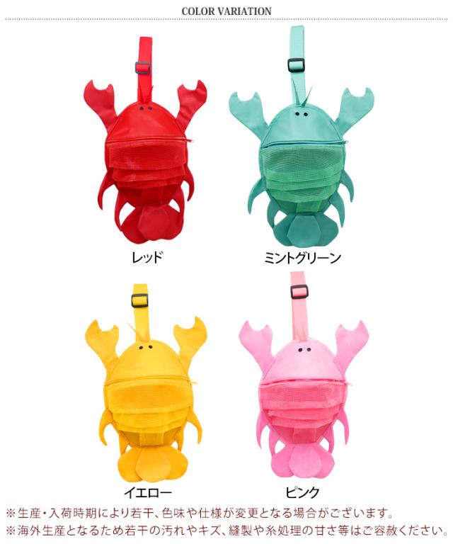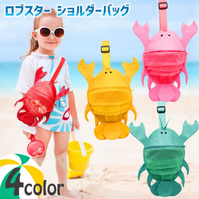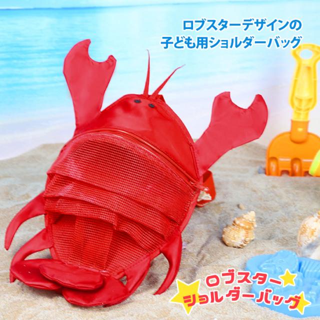 新作 選べる4カラー ロブスター メッシュ キッズ ショルダーバッグ キッズバッグ 子供 ミニショルダー ビーチバッグ カバン バッグ ポシェット 小さめ 軽量 保育園 幼稚園 海 海水浴 ビーチ ザリガニ 可愛い