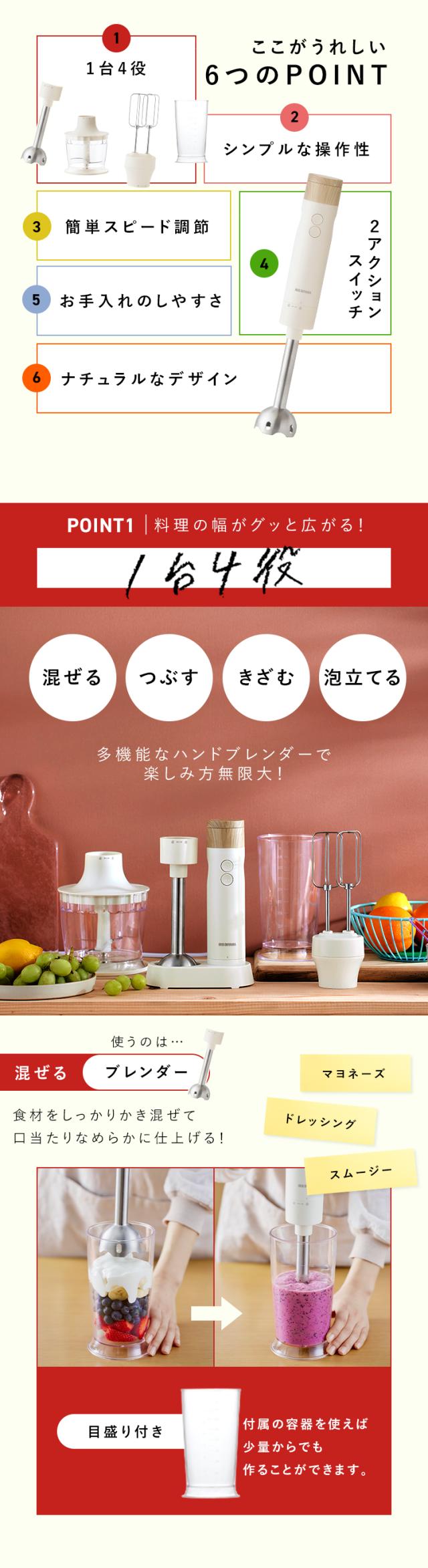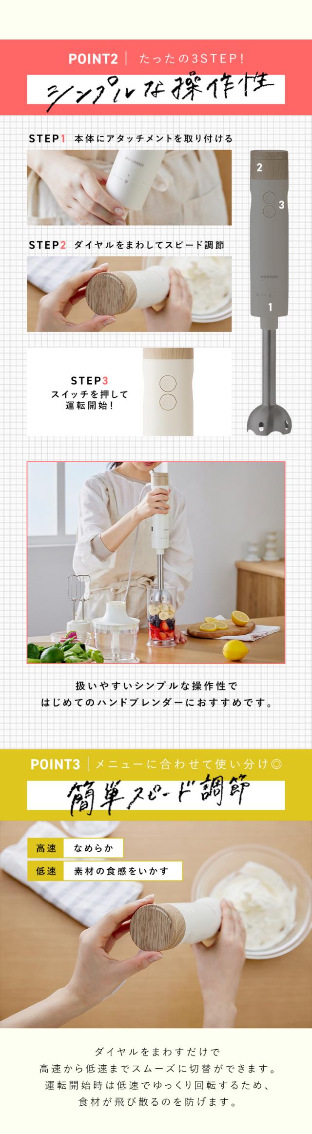 ブレンダー 離乳食 スムージー ハンドブレンダー IHB-M301 ハンドブレンダー 1台4役 アイリスオーヤマ 泡だて器 ミキサー ハンドミキサー ジューサー 出産祝い プレゼント 時短調理 ホイッパー チョッパー IHB-M301 安心延長保証対象