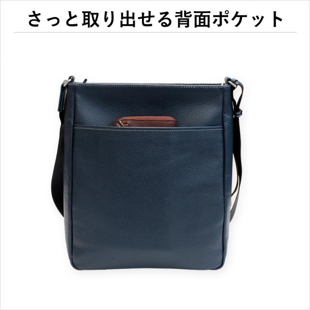 すっきりとしたハンサムルックスでジェンダレスデザインが魅力の、本革ショルダーバッグです。