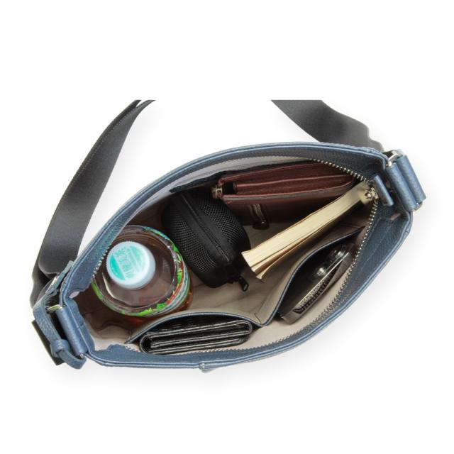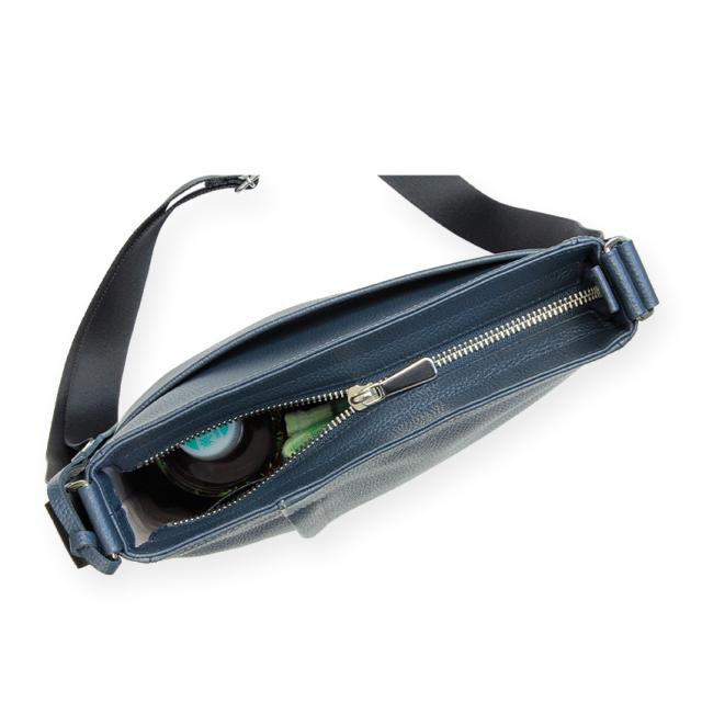 長財布やメガネケース、ガイドブック等、収納力も頼れるハンサムでスマートなデザインが美しい本革ショルダーバッグです。