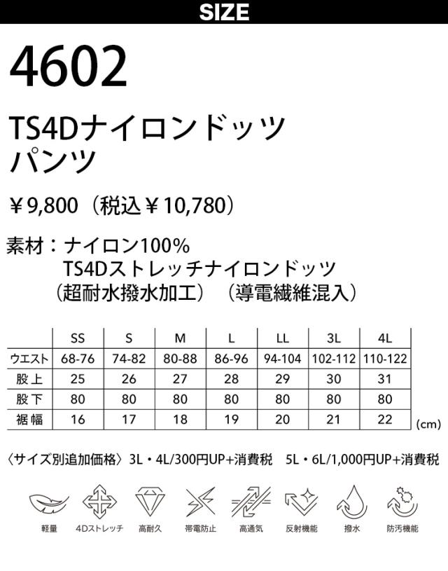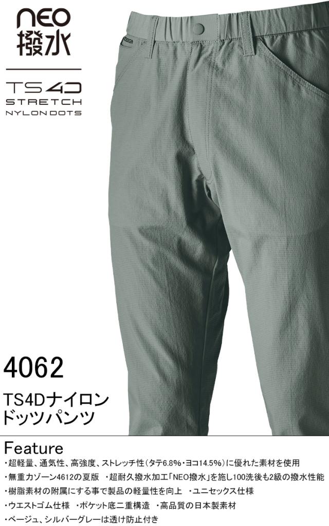 TS TSDESIGN 藤和 TS4D 薄手なのに強度と通気性を持つストレッチナイロンドッツ 4602 メンズ 春夏 動きやすい 軽量 制電 撥水 防汚 高通気 作業服 作業着