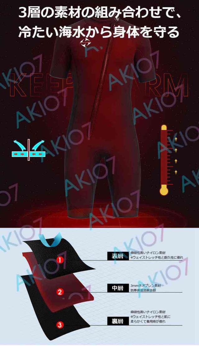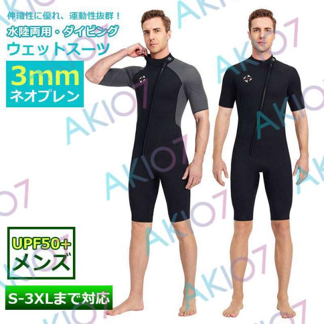 【3mm&メンズ】ウェットスーツ 水陸両用 フロントジッパー 水着 ネオプレーン シュノーケリング パドルボード ハーフパンツ ダイビング マリンスポーツ 保温