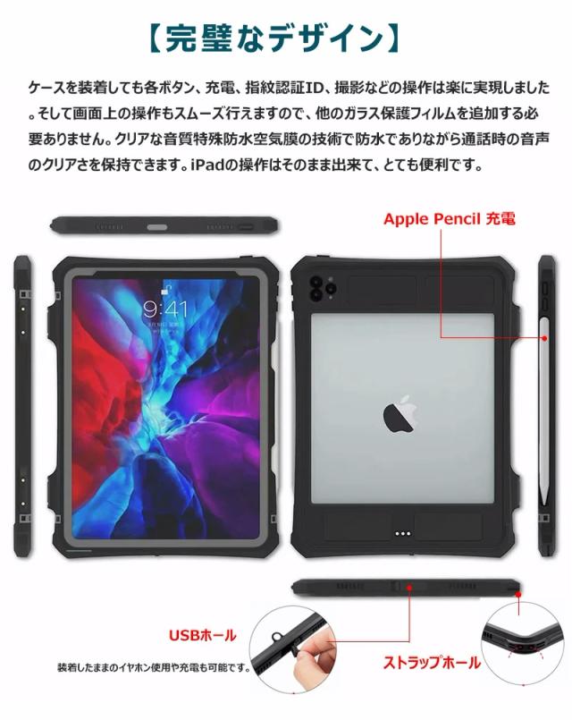 完全防水 ipad pro 11 防水ケース ipad pro 11 第5世代 ケース 2024 2022 2021 2020 iPad Pro M4 防水カバー ipad pro 11 第3世代 ケース ipad pro 11インチ 第4世代 ケース ipad pro 11インチ ケース 耐震 防雪 防塵 耐衝撃 360°保護 お風呂 雨 海 水中撮影 iPadケース
