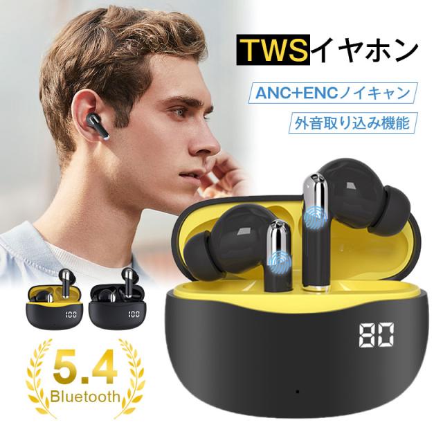 ワイヤレスイヤホン Bluetooth5.4 カナル型 完全ワイヤレスヘッドセット 無痛装着 ANC+ENC ノイズキャンセリング 高音質 クリア通話 【PL保険加入済み製品・安心】