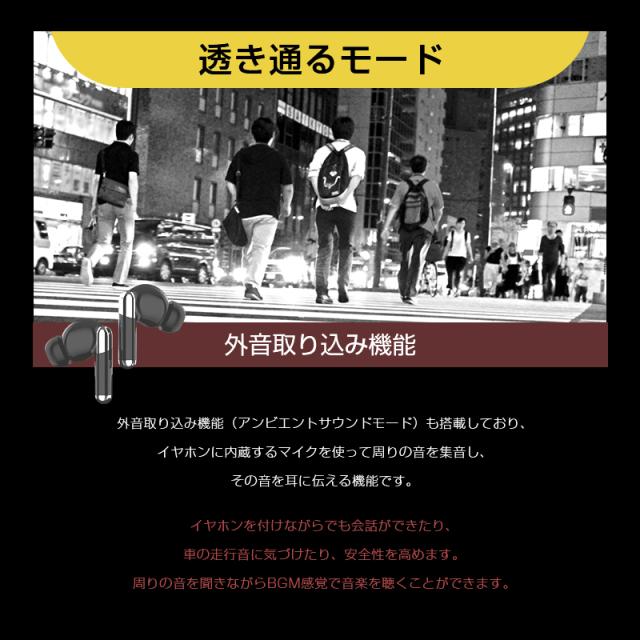 イヤホンを付けながらでも会話ができたり、車の走行音に気づけたりすることができます。