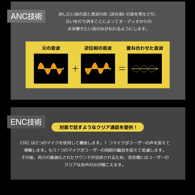 雑音のみをカットしてくれるので、よりクリアな通話と快適な音楽体験を提供。ANCとENC両機能は互いに補完し合い、ノイズ除去効果を最大化に。
