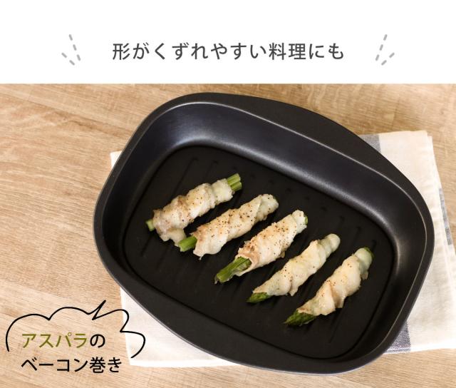 形が崩れやすい肉巻きのような料理も、フライパン調理のようにひっくり返す必要が無いので、きれいな形を保つことができます。