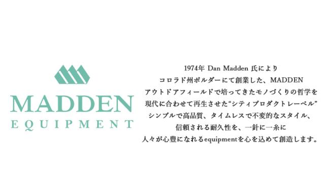 ・【MADDEN EQUIPMENT】 アウトドアフィールドで培ってきたモノづくりの哲学を現代に合わせて再生。 シンプルで高品質な商品、信頼される耐久性を創造するブランドです。