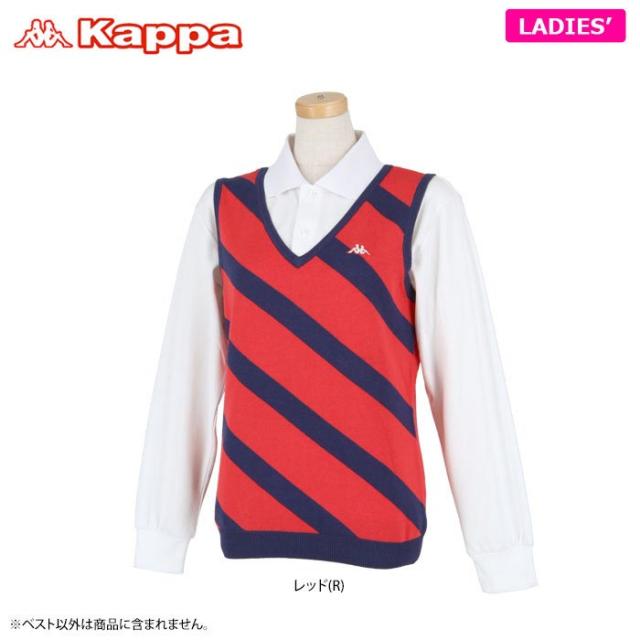 [94%OFF] ゴルフウェア カッパ レディース ロゴ刺繍 ストライプ柄 Vネック ニット ベスト KGWD3T01 [秋冬モデル] 特価